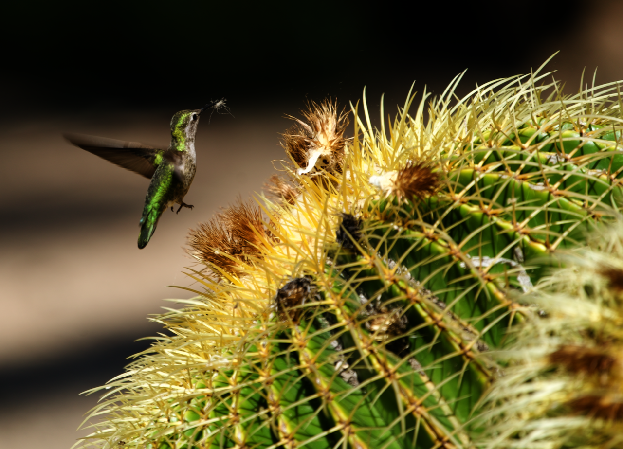 My dog Ewok had is haircut today in Menlo Park, so after dropping him off, I went to the Arizona Cactus Garden to see what birds and cactus blooms might be out. (Click images to enlarge)